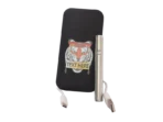 Sleek case protects cigarettes, includes lighter, lighter holder, and a charging cable all in one compact design.